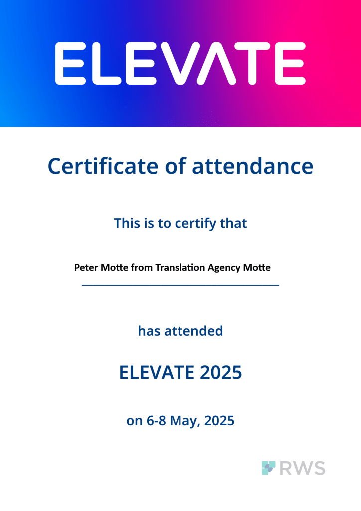 Vandaag nam ik deel aan een congres over AI en vertalen, waarvan u hierboven het certificaat ziet.